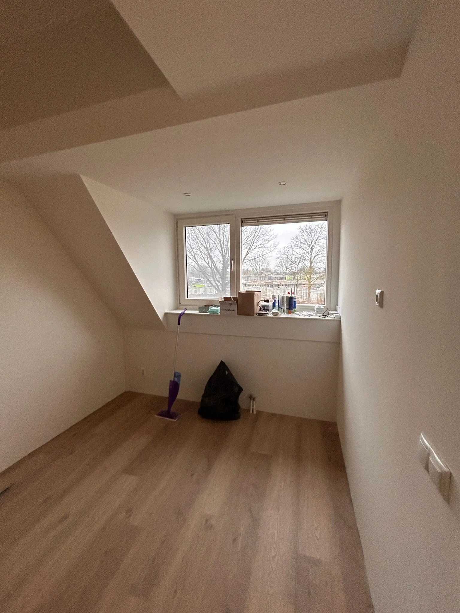 De nieuwe indeling (2 kamers en overloop) en ook een opberg vliering gerealiseerd.